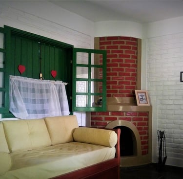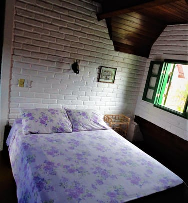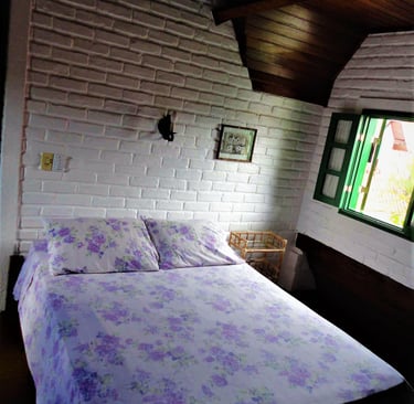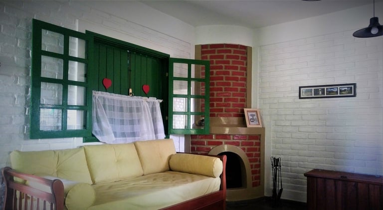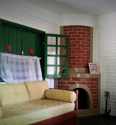 Ambientes independentes com lareira e suíte, perfeitos para relaxar e descansar. Os Chalés oferecem 2 ambientes independentes.