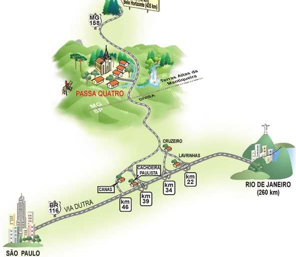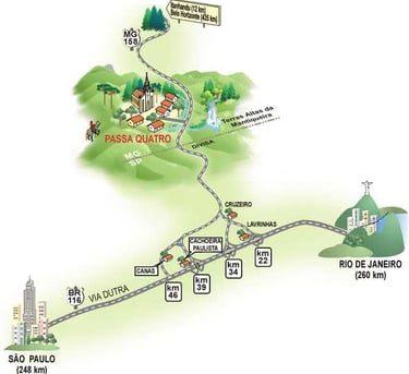 Passa Quatro (MG) é uma Estância Hidromineral e compõe o Circuito das Águas. Como uma típica cidade do interior de Minas Gerais, conta com uma população acolhedora que soma pouco mais de 15 mil habitantes. Está localizada no eixo Rio-São Paulo, a cerca de 250 km dessas capitais, com fácil acesso pela via NovaDutra.